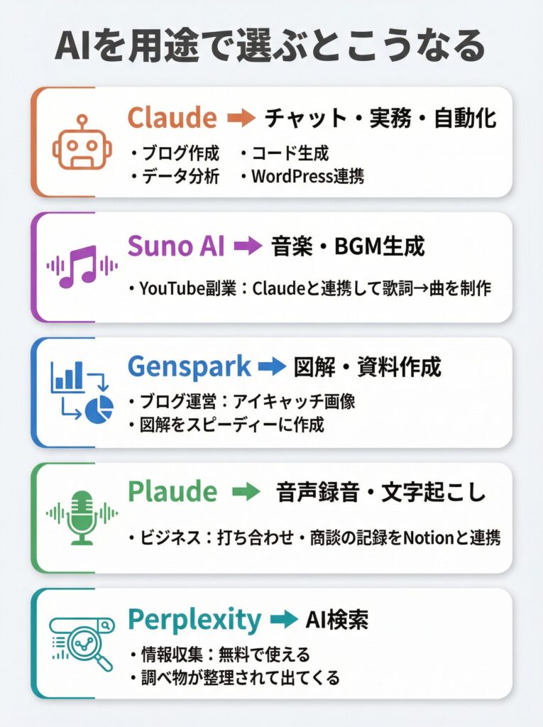 今も使い続けているAIと用途別の使い分け