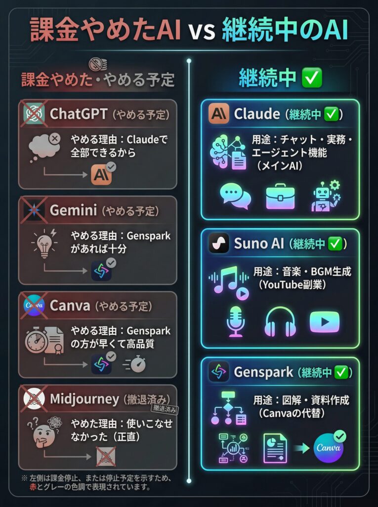 私は2年間、12種類以上のAIツールにお金を払い続けました。試行錯誤した末に出た答えがこれです。